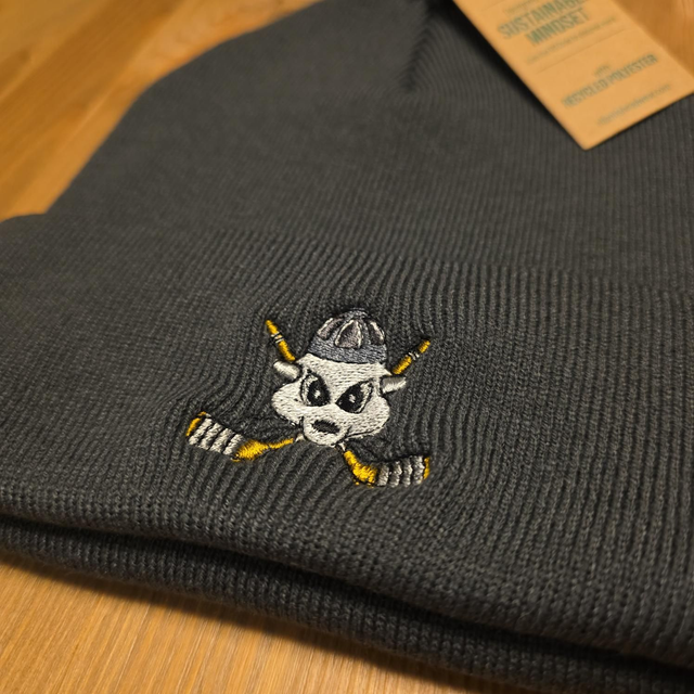 Harmaa tupsupipo brodeeratulla EtäKärppien logolla